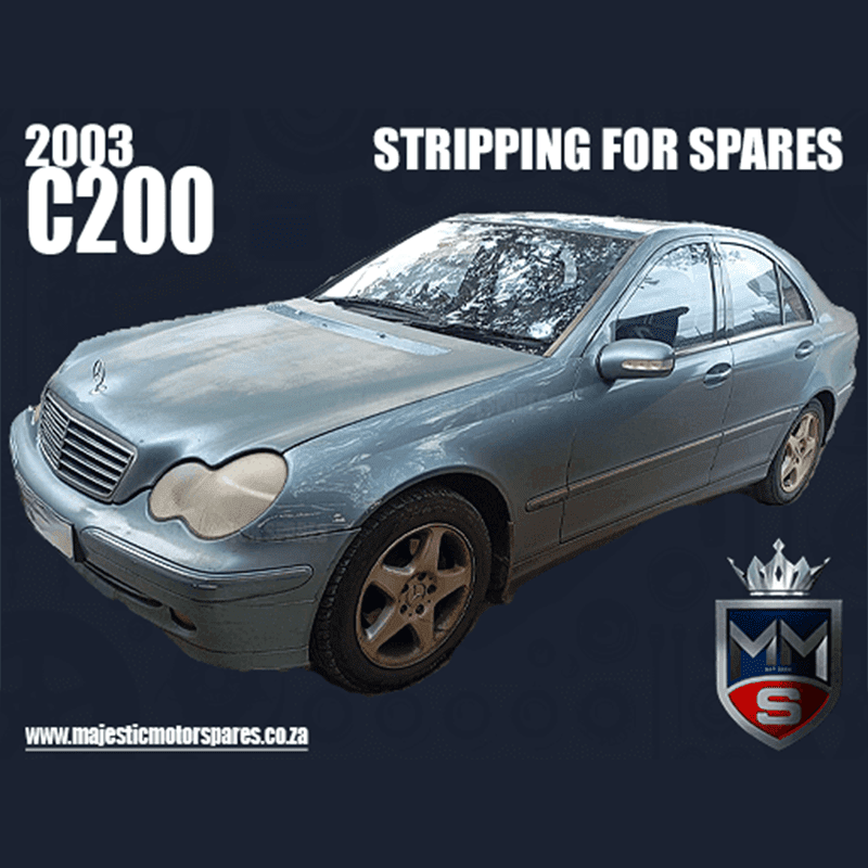 We are currently stripping a 2003 MERCEDES-BENZ C200 KOMPRESSOR W203 MANUAL PETROL for high-quality used spares. This Aragonite Blue Metallic sedan has recently arrived and is being dismantled for components compatible with other W203 C-Class models. It features the reliable supercharged M2719 petrol engine and a 716628 manual gearbox, offering dependable performance and efficient power delivery. Because C-Class parts are in high demand, stock availability changes quickly — please confirm before ordering. If any requested part is already sold, we can suggest a compatible alternative or notify you about future arrivals of similar models.